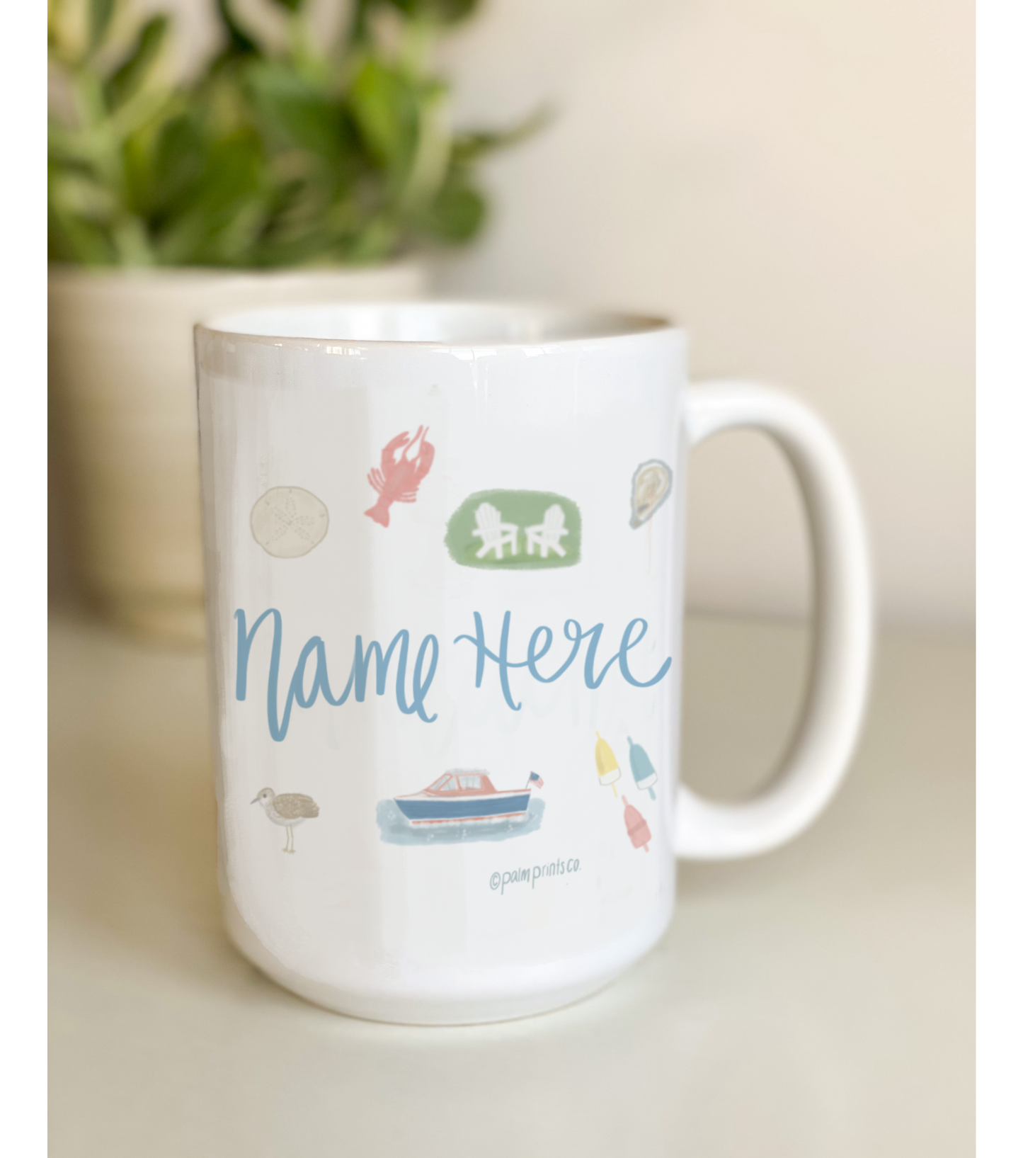 Add your own location and daydream about your favorite place while sipping your coffee out of this beautiful ceramic mug. Features coastal illustrations that wrap all the way around the mug, and the name of your favorite place hand lettered. These mugs are a generous 15oz size (to fit plenty of extra coffee!) and microwave and dishwasher safe for easy care. This mug makes a great housewarming gift to remind your loved one of home!