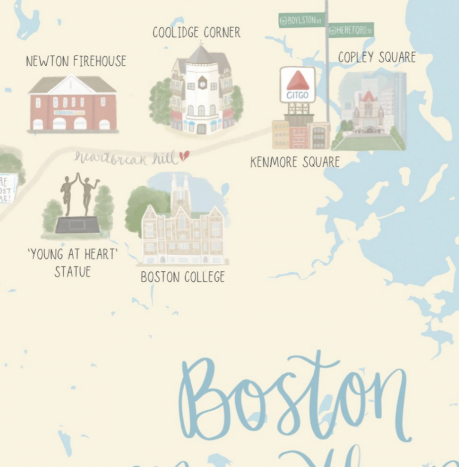 Boston Marathon Map Print