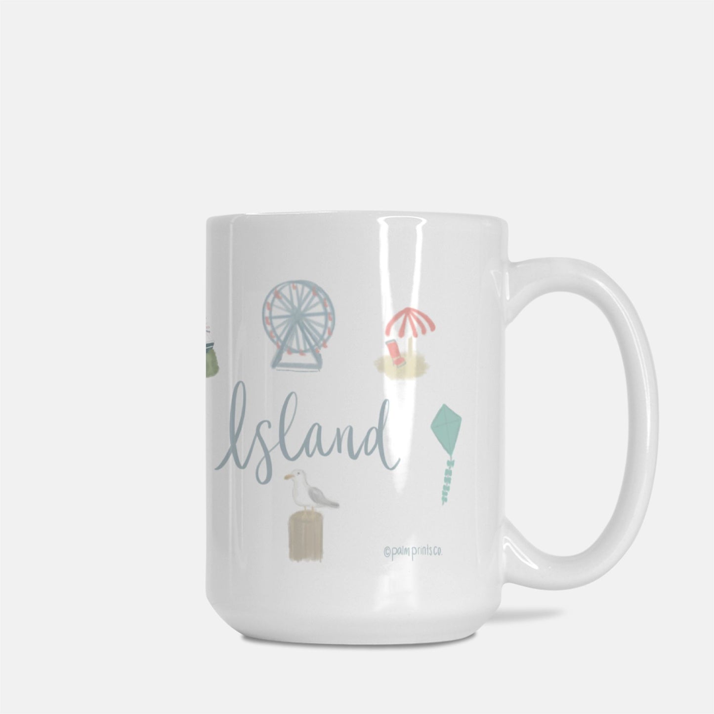 Daydream about your favorite memories in Long Beach Island while sipping your coffee out of this beautiful ceramic mug. Features hand drawn images of icons wrapped all of the way around the mug that will remind you of this colorful coastal city.