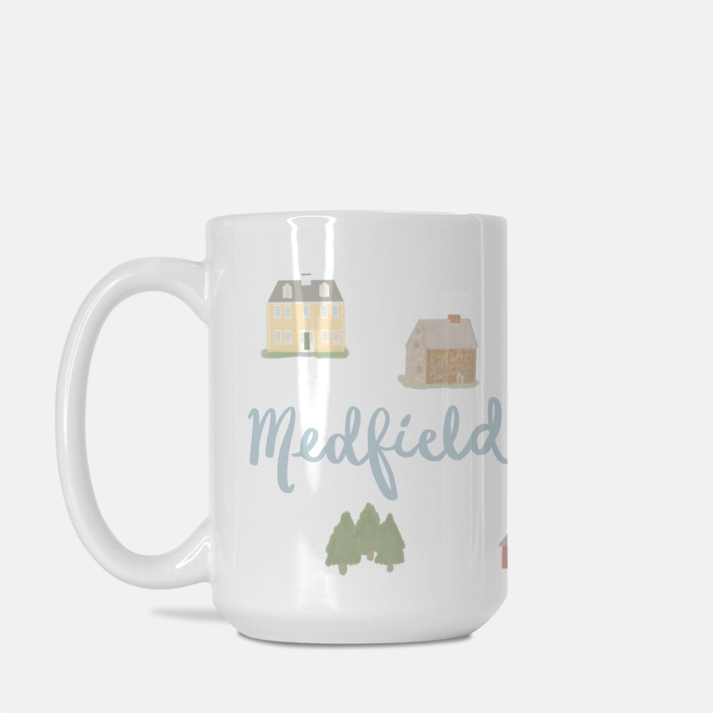These mugs are a generous 15oz size (to fit plenty of extra coffee!) and microwave and dishwasher safe for easy care. This mug also makes a great gift for the Medfield lover in your life and comes wrapped in a clear sleeve, tied up with a ribbon so that it's gift ready.