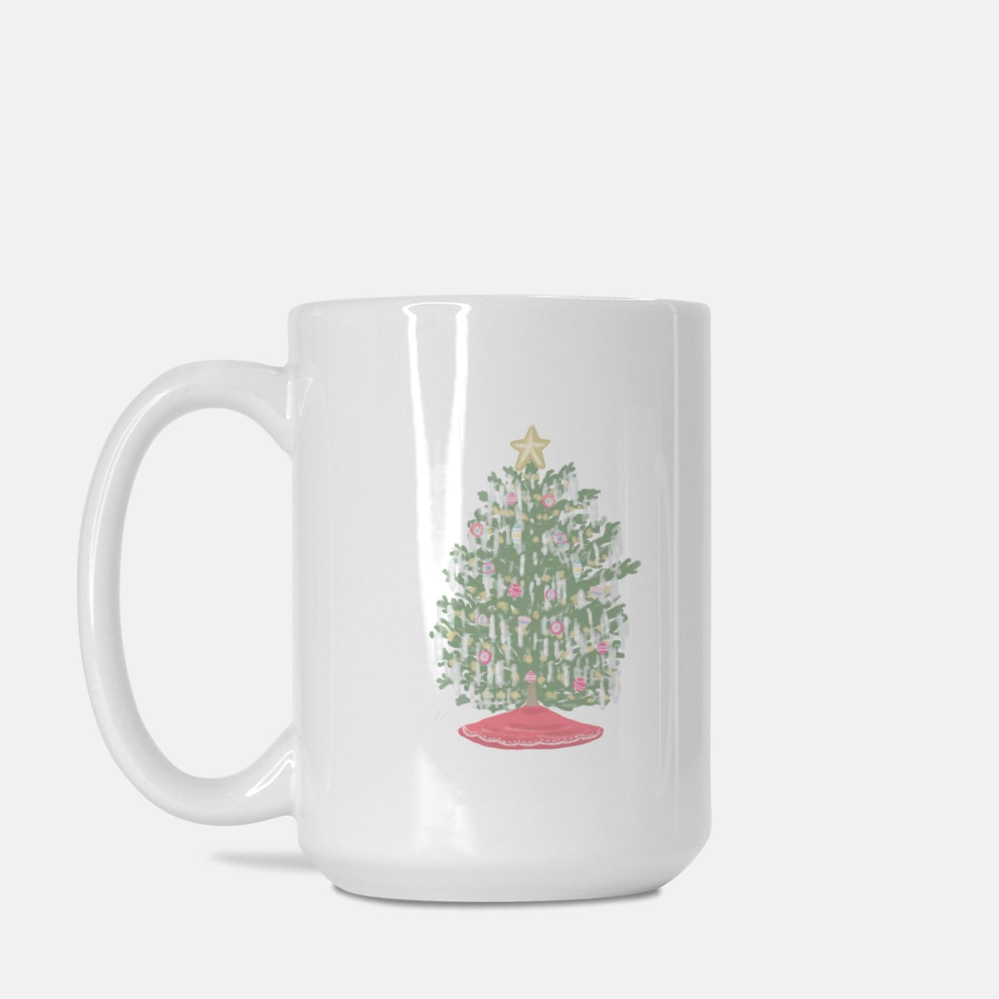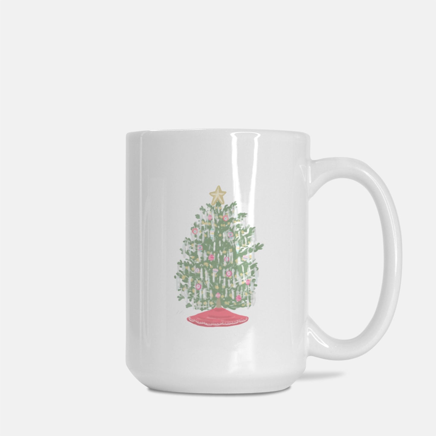Sip all of your warm, festive beverages out of this Tinsel Tree mug! The illustrations of nostalgic trees covered in ornaments and silver tinsel are featured on both sides of the mug.