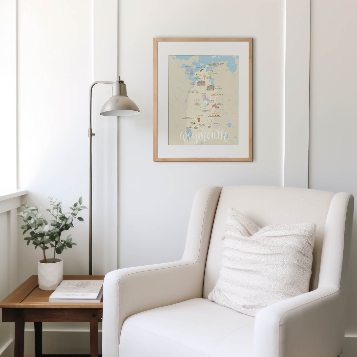 Add a touch of coastal charm to your home decor with a Weymouth, Massachusetts map print! Featuring iconic landmarks in a soft color palette, this print is a perfect reminder of your home or your happy place. This print makes a thoughtful hostess or housewarming gift as well!